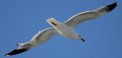 Anyway the sun came up and so did the Cory's again- I counted at least 18 today. Have been checking them closely when feasible- which has not been often, in the off chance that one or more of them are the fabled 'Scopoli's shearwater', which apparently is thought to be a species in its' own right by some, although often treated as a race of Cory's by most. I just don't think I could separate them in the field if I am totally honest, as the finer points of the I/D criteria would need pretty good views! Anyway, other than that there was little else to blog about other than a handful of LBB & YL gulls. Highlight of the late evening was a distant, juvenile Great skua which appeared to be moulting and looked decidedly manky. Still, it's a decent bird for here it would seem. Still not seen a single cetacean.